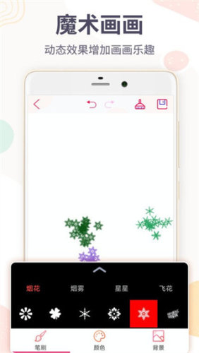 2、设有动态化的画画功能,当中包含了烟花,烟雾,星星等等,画出各种有趣的画面;