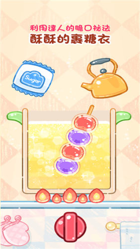 《糖葫芦达人》是一款卡通风格的模拟经营手游哦,玩家将扮演露露在父母的糖葫芦店面临倒闭还被同行抢客的情况下,靠自己的努力重振生意玩家么需要亲手制作美味糖葫芦,还要通过直播吸引顾客提高人气制作糖葫芦不仅考验搭配创意,还要掌握裹糖衣的技巧才能做出口感又脆又甜的糖葫芦。