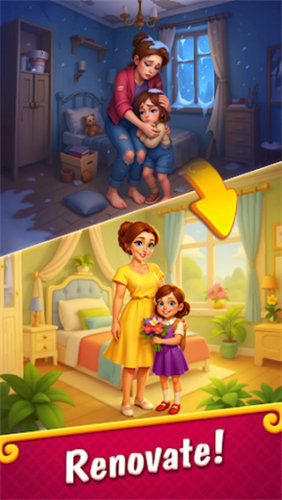 玩家可以根据星星的指引前进,去解锁一个又一个的区域来进行各种精美的装扮。游戏主要是进行合并的玩法,你可以选择移动两个相同的物品进行合成,以获取新的物品。每一次玩家的装修任务都需要新的材料,你可以通过合成去获取的。你需要不断的完成任务,然后解锁更大的地图,让玩家可以有更多的探索。