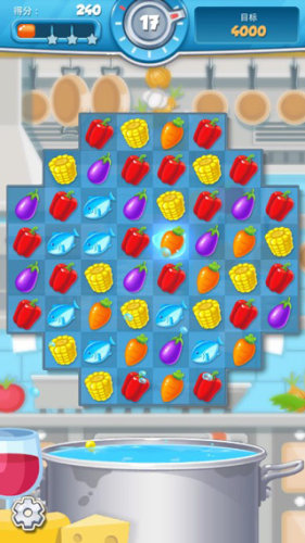 在游戏中,玩家需要通过三消闯关来收集各种食材,把相同的食材连在一起就能完成消除,步数有限,所以要合理安排才能拿到更高分数甚至三星评价。获得的金币可以用来装修和扩展餐厅,随心打造中式、西式或法式等不同风格的主题餐厅。边玩关卡边经营餐厅,看着餐厅一步步成长,就是这款游戏最大的乐趣。