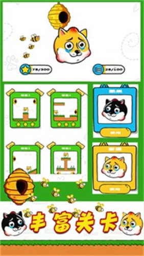《蜜蜂狗的冒险》是一款挑战性十足的益智游戏。游戏以卡通风格呈现给玩家,角色打造的神奇可爱,为玩家带来放松以及快乐。操作简单,没有难度且适合消磨时间。玩家可以轻松的畅游梦幻的童话世界,尽情的探索并征服各种挑战关卡。你要通过解谜来帮助可爱的小狗突破各种不同的障碍。游戏关卡中都配有有趣的蜂群轻快的背景音乐,每次成功挑战都有丰厚的奖励。无论年龄大小,都能享受游戏的乐趣并放松心情。