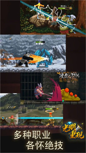 《光明重现》是一款消除和策略元素结合的角色扮演游戏。在神秘的奥斯洛大陆中,曾经是繁荣与和平的存在,但随着黑暗女王卷土重来,刹那间便让整个大陆陷入危机之中。而玩家将扮演一名勇敢的英雄,踏上拯救大陆的旅程。以独特的将三消玩法和回合制战斗融合,让玩家通过消除特殊图案获取“行动点”,再利用行动点出发英雄的攻击能力,施放天赋技能或者是施展阵法。游戏画面采用了复古像素画面,场景丰富多变,英雄角色和敌人的种类也繁多。感兴趣的玩家就赶快帮助奥斯洛大陆重现光明吧!