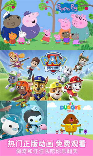 4、不仅仅提供了儿歌,知识,软件里还设有卡通动画,不管是小猪佩奇,汪汪队,超级飞侠等都能够自由观看。