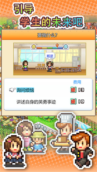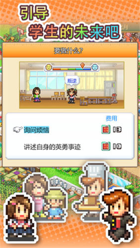 《口袋学院物语3》是一款以经营学校为主题的模拟类游戏哦,也是该系列的第三部作品游戏延续了像素风格画面清新治愈,玩家将在这里扮演校长,亲手打造属于自己的梦想学院从起初的小校园逐渐扩建,招募学生和老师建造各种教学和生活设施,慢慢将学校打造成人人向往的明星学府,游戏不仅考验玩家的规划和经营能力,还能让玩家们体验校园生活的温馨与乐趣。