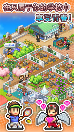 进入游戏后,玩家首先要给学校取名并设定校服然后招收新生开启校园经营,通过不断建造保健室啊图书馆啊音乐室啊操场等设施来提升学校的整体人气,让更多学生慕名而来随着人气提升资金收入也会增加,学校规模也能进一步扩大。