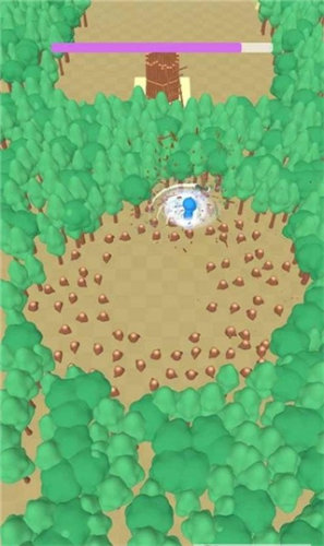 游戏了采用简单的旋转操作机制,玩家们需要通过操控一个橡皮人来进行旋转砍树,需要掌握角度力度砍倒树木,不断的收集更多的材料。玩家们还需要通过旋转调整砍伐角度,把握时机发动连续砍伐。合理规划树木倒落方向。避开障碍物完成目标。