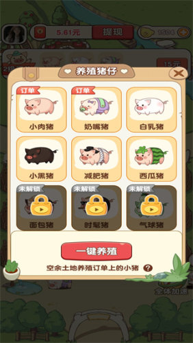 1、操作非常简单,玩家只需轻轻点击鼠标就能进行养猪和下单,适合各个年龄段的人轻松上手;