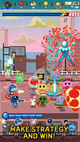 《复古游侠》是一款策略闯关的角色扮演游戏。玩家将扮演勇敢的骑士,带领勇士部队抵御怪物的入侵并保卫地球和平。玩家需要收集多样的英雄角色,不断的升级和强化他们的属性,合理排列团队以应对不同战斗场景。以养成,策略布阵和实时战斗的操作,不仅能够让玩家体验复古像素的魅力,还能体验节奏紧凑的动作快感和阵容搭配的趣味。游戏的整体风格富有魔性,且极具游玩价值,喜欢动作冒险和战略养成的玩家就不要错过了,赶快来挑战吧。