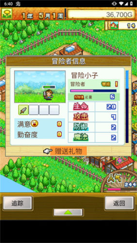 进入游戏后,各位玩家们是将从最基础的建筑开始逐步建设旅店啊餐馆啊商店来吸引冒险者,冒险者们会自动战斗探索迷宫并带回金币或装备,随着村庄人气的提升冒险者会提出定居申请解锁更多职业和技能,各位玩家可以送礼提升人物满意度甚至帮助他们转职,从而在游戏中各位玩家么打造出最强的勇者啊。