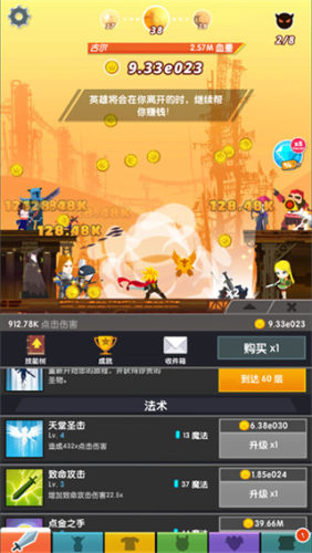 进入游戏后,玩家可以通过点击屏幕控制剑圣战斗点击越快输出越高,随着关卡推进会遇到强大的Boss需要全力出击才能通关,战斗中要注意召集伙伴解锁宠物他们会自动输出帮玩家们清怪,通过升级装备点亮技能树不断提升自身实力,就能挑战更高层数。
