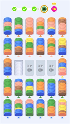 3、存在多种不同的游戏硬币,每个颜色的伴随着不同的等级,尝试逐渐解锁。