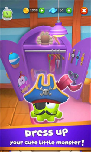 1、能够收集各种不同的纪念品,展示在回忆室中,回顾你和宠物Om Nom的欢乐时光;
