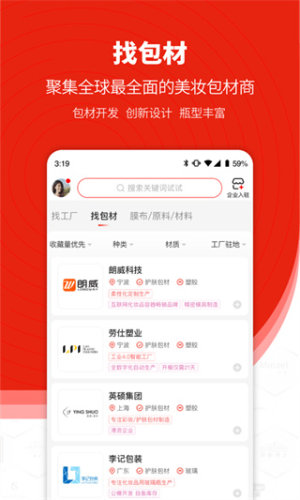 用户能够在软件里收获到各种化妆品的新闻资讯,了解到日化时代的变化,同时还能够获取到关于化妆品行业的发展公告,轻松掌握最新的通知。用户还能够在线还可寻找货源,只需要根据品牌,浏览和查询到品牌商品,了解优惠的商品资料,轻松完成各种采购。
