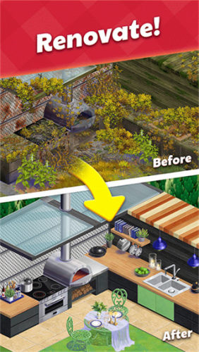 进入游戏后,玩家需要通过完成消除关卡获得星星,星星是修复花园和解锁剧情的关键资源可以用来重建喷泉修剪草坪翻新房屋等,随着剧情推进会结识不同的角色他们会加入到玩家们的花园故事中,除了改造家园还可以收养宠物训练狗狗参与比赛,甚至加入小区和朋友互动。
