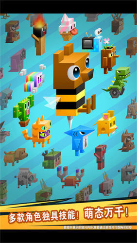 3、40个实验室小怪兽等玩家们收集,龟壳兔啊电视蜗牛等造型可爱,还自带技能;