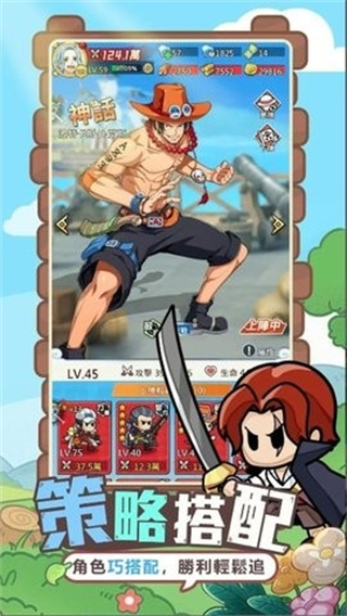 1、收集很多经典的海贼王卡牌,每张卡都有自己的技能和特点,帮玩家在战斗中制定更聪明的策略;
