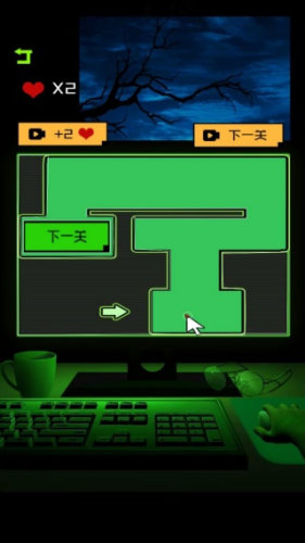 每当踏入迷宫之后,眼前只会出现暗黑的通道中保留的一点点光源,玩家只需要简单的操控着角色在迷宫里移动,仅靠未有不多的提示和角色的记忆力一步步的决定前进的走向。其中还会遇到散落一地的道具和线索,帮助玩家更高效的解开谜题,机关,隐藏门或是闪躲陷阱的方式前行。每次移动都需要精神的思考,避免因为错误的选择,带来一系列的恐怖事件或是死胡同场景。同时,还伴随着背景压抑的音乐和低语声,逐渐的干扰玩家,展开心里博弈的较量,克服恐惧。