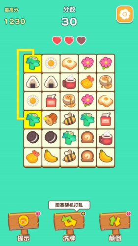 每当进入一场游戏关卡都能观看到方块所组合成为图案的布局场景,主要的任务就是完成配对,只需要就爱那个相同的图案相互的配对完成就能成功的通过关卡条件。主要的规则不复杂,快速就能上手,尝试点击两个相同的图案,根据合适的路线进行消除,一旦触发连锁消除还伴随着加成的高分数累计。每个关卡通关条件丰富,如有限定步数完成,限定时间,消除特定的图案等等的类型。随着深入还能利用系统提供的道具或是选择组合,将4或5个图案连线就能生成消除的道具功能,顺利的通过关卡。
