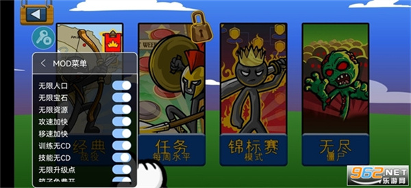 玩家们需要不停的去各种任务和关卡,来获得丰厚的金币和钻石并使用它们来购买更高级强大的兵种,也可以组建一个属于自己的火柴人军队,并带领它们去到各个角落征服敌人。