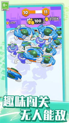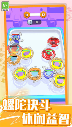 2、拥有了多样化的关卡和各种陀螺可以选择,玩家可以一直不断合成升级,打造属于自己的最强陀螺;