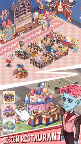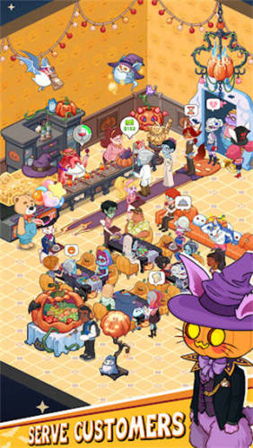 玩家可以为你的餐厅增加多种魔法装饰。你只是需要通过简单的拖放操作,将南瓜灯悬挂在墙上,把沙发改造成蝙蝠的造型,轻松切换店内的哥特式以及童话风格,创建出一个专属自己的用餐环境。玩家肯定会享受到愉快的装饰乐趣,让每一个场景角落都充满了个性与魅力。这里没有恐怖的故事,只有温暖的氛围和奇妙的顾客,毛茸茸的狼人、善于八卦的幽灵厨师,以及一间充满魔法的餐厅都在这里等着你去探索。