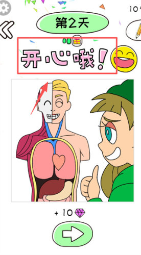 4、一旦成功的破解,直接带入奖励的页面中,点击下方居中的绿色按钮,就能获取额外的10分和紫色的钻石的奖励机制。