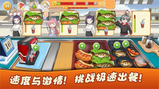 2、根据每一个食物的制作步骤,仔细的进行点击,并且在时间限制之内快速的交出失误给与他们手中。