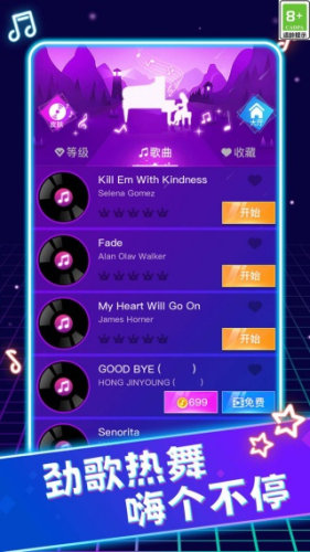 2、提供海量的歌曲类型,一旦连续打基础50个音符后就能成功激活双倍的积分项,出现失败直接取消奖励机制,持续普通模式。