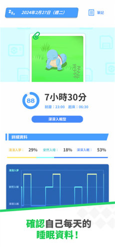 《宝可梦睡眠》是一款很特别的游戏,主要是帮玩家记录和改善睡眠,只要把手机放床边或者戴上智能手环,游戏就会自动跟踪玩家的睡眠情况,然后解锁可爱的宝可梦陪玩家睡觉。