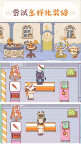 《卡通餐厅模拟》是一款十分温馨又治愈的经营模拟游戏。玩家将帮助多只Q萌可爱的小猫一起管理一家美食餐厅,烹饪海量多种的美味餐点,以满足大量顾客的要求。你想要通过赚取金币来不断扩建你的店铺、解锁新的菜谱,创建专属的萌系餐饮帝国。