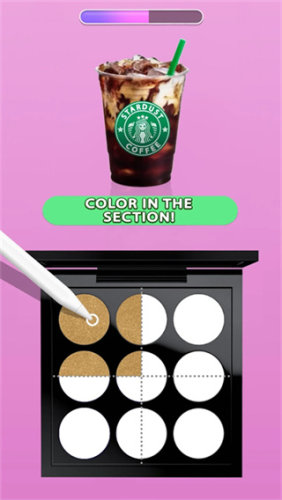 1、完成下载后就进入游戏,通过屏幕操控眼影笔和选择眼影盘;