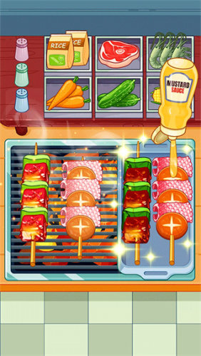 2、乐趣来自细腻的声音体验,锅中食材的爆炒声,刀具切割的节奏声,还有食物烹饪时的“滋滋”声,让玩家沉浸在厨房的氛围中;