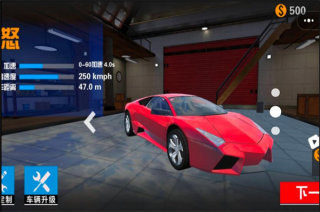 2、在自定义页面中,尝试更改车辆的外观造型已经颜色配对,会是选择升级车辆性能,提升速度,增加快感。