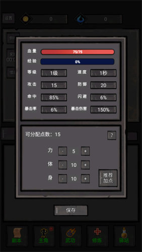 2、游戏开始时,先合理分配角色的点数,提升火柴人的能力,做好准备迎接挑战。