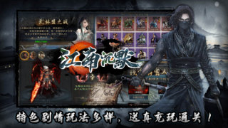 2、将化身各种江湖侠客,各具特点,如有侠客行可拥有流星火雨群攻刷怪、除魔师可用雷霆刺杀切BOSS,还能够收集天下名剑;
