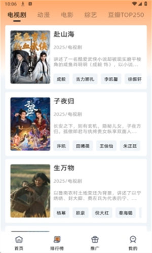 2、设有影视排行榜,用户可以在排行榜中查看更多的热门综艺,电影等等,能够观看到时下最新最热的影视作品;