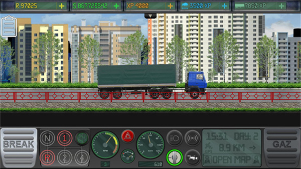 玩家们需要不停的去接收各种各样的货物订单运输任务,来赚取更多的钱,并使用它们来购买更多的卡车,尽情的在这里展开你的卡车之旅,欣赏各种沿途的风景吧。