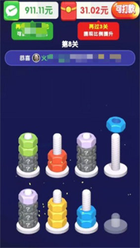 3、 包含多个关卡,每一关的螺孔位置和难度都有所不同,等着玩家来挑战;