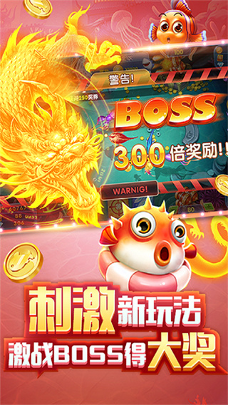4、和其他玩家抢鱼儿,挑战大Boss,享受刺激的多人对战捕鱼快感;