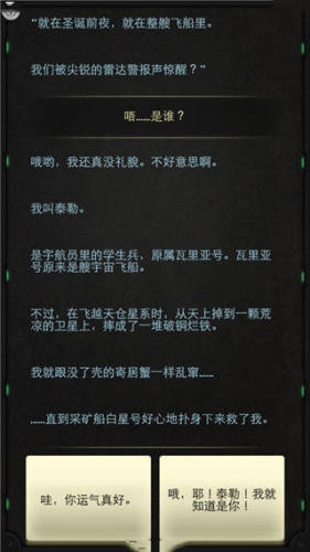 1、开局聊天有两种身份可以选:要么完全当个陌生人跟泰勒聊,要么用“老熟人”的身份再遇见他。大部分人都会选第二种,感觉会更亲切;