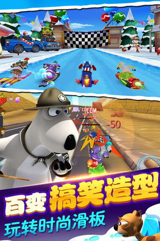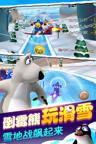 将扮演一只可爱呆萌且灵活的北极熊,在世界及多样场景中展开惊心动魄的竞速冒险。玩家们需要精准控制方向,避免碰撞障碍物,还要不断收集各种道具与金币。玩家们还能够根据赛事类型和个人喜好选择合适的角色与滑板。