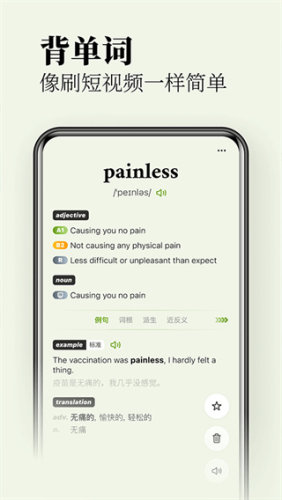 1、只要往上一滑,就能换下一个单词,整个过程像刷短视频一样,不费脑子,特别顺手。