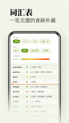 2、你在一个单词上停留久一点,APP就知道你还不太熟;滑得快,就是已经掌握了,完全自动化,懒人福音。