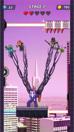 《暴走毒液》是一款深受还原和好玩的闯关类游戏,创新的玩法吸引了许多玩家们进行游玩。玩家子啊游戏里将会化身成为一名战斗勇士,并且将会拥有特殊的技能,与敌人展开激烈的搏斗时将会化身成为“毒液”英雄,通过不断地往上放跳跃的方式与敌人对战,成功将敌人全数击败后就可获得奖励。丰富和多养的皮肤,玩家必须通过顺利闯关和完成任务才能解锁皮肤和提升攻击能力,以便能应付更强大的敌人对战。