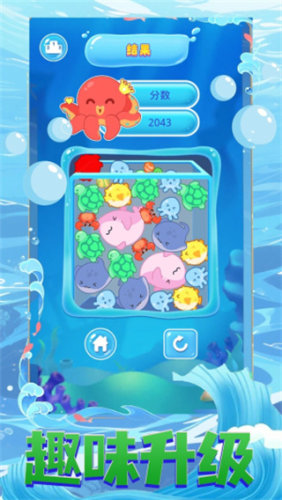 1、采用有趣的海洋生物作为主题背景,伴随着精致清新的游戏画面和各种可爱的海洋生物;