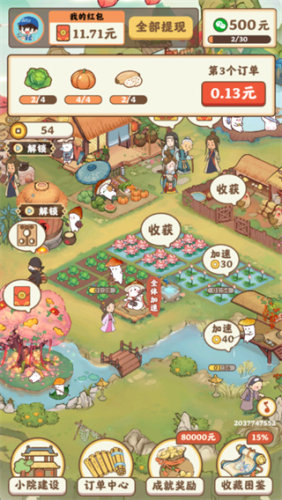4、每完成一个订单,都会获得相应的奖励,帮助你进一步发展农场。