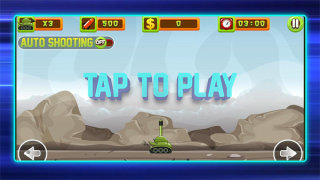 1、点击进入游戏关卡,尝试操控屏幕上的左右两边的操控按钮,灵活的移动坦克持续的前行移动,并且点击空的区域就能发射射击。