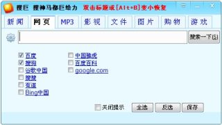 搜巨搜索是一款免费好用、绿色小巧的资源搜索器,这款软件支持多种搜索引起一起搜,集合多个搜索引擎搜索,同步显示各大引擎关键词,集成新闻搜索,网页搜索,音乐MP3搜索,电影视频搜索,文件搜索,图片搜索,购物搜索,游戏搜索,搜的更多找的更快。