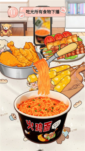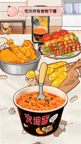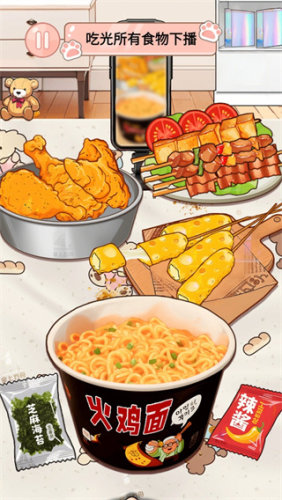 3、选择的是火鸡面吃播,前方的食物将会是火鸡面以及各种美食。