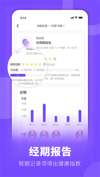 • AI经期预测(准确率98.3%)+周期智能分析